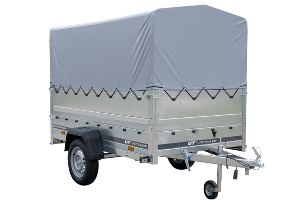 Remorque grande taille avec rehausses de ridelles et bâche haute UNITRAILER Garden Trailer 230 KIPP est le dernier produit de notre offre. Maintenant, c'est la plus grande remorque dans notre magasin avec PTAC jusqu'à 750 kg. Elle est équipée de la ridelle arrière ouvrable, ce qui rend facile le chargement et le déchargement de la cargaison. Grâce au timon pliable, elle peut être placée verticalement sur le panneau arrière. Nous faisons toutes les formalités liées à l'achat pour vous. La remorque est livrée à votre domicile avec tous les documents nécessaires pour l'immatriculer.