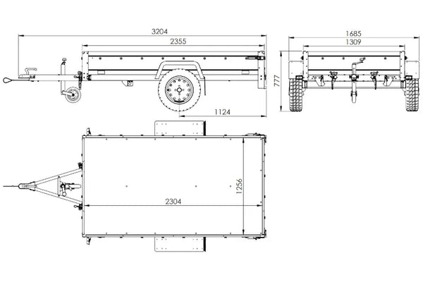 Modèle Garden Trailer 230 Kipp PTAC max. 750 kg Longueur du compartiment de charge 2304 mm Largeur de la surface de chargement 1256 mm Nombre d'essieux 1 Usage déménagements / transport de meubles transport de marchandises dans l'entreprise